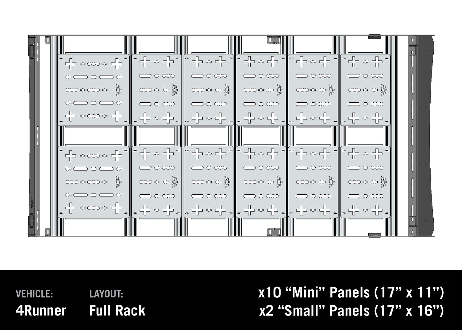Our aluminum panels are available in 2 different sizes in order to accommodate different roof layouts and work around solar panels and other roof accessories. While our panels are made specifically to fit our DRIFTR Roof Racks, they can be used on other roof racks, but we cannot guarantee fitment. These are compatible with most 1x2 Extrusions from other branded roof racks.