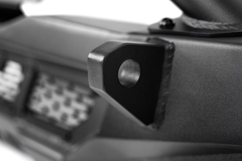Introducing the new Spec Series line of bumpers from DV8 Offroad. Our designers worked to create a Jeep winch front bumper that not only provided protection & recovery options off-road, but gives your Jeep a truly unique look. Its high clearance design is perfect for aggressive rock crawling, ensuring you can tackle any obstacles. At the center of the bumper is a removable winch plate that can mount most full-sized winches. Pictured in the gallery is a Warn 12s EVO. The bull bar can mount up to a 15-inch light bar above or below if not running a winch.