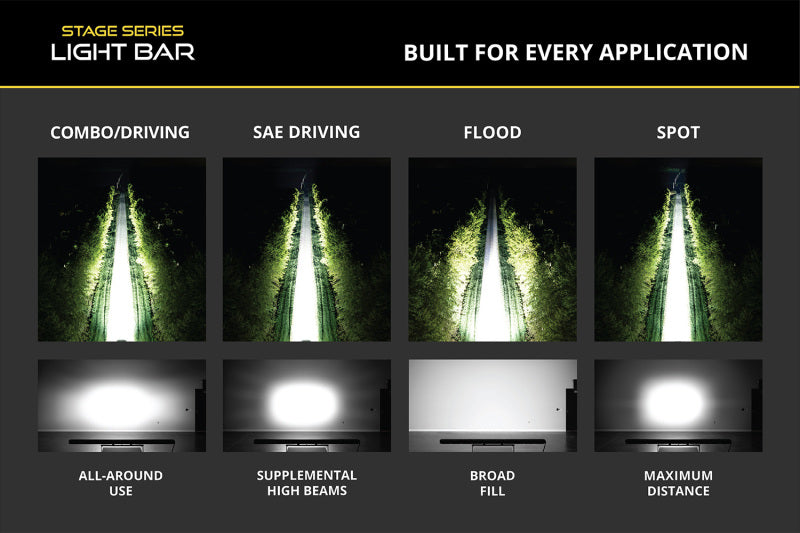 FeaturesPatented TIR Optics for maximum efficiency and outputUpgraded beam patterns engineered for real-world performanceTrue amber backlight provides unique accent lightingBuilt for the extremeOverviewSee Further and Go Faster with all-new SS50 LED Light Bar! With higher light output, modern optics, and greater intensity than anything else on the market — plus advanced control and unmatched configurability — the new Stage Series Lightbars are the most capable lightbars available today.Designed for Performance. Each Stage Series Light Bar has been engineered from the ground up to provide more output. The TIR optics capture and focus nearly all of the light output, shining it only where you need it.Thanks to copper circuit boards on the high-power models, thermal transfer materials, and optimized heatsinks, these lightbars effectively dissipate heat from the LED chips, allowing them to run at maximum power, producing serious light output.Built for Every Application. Each beam pattern has been fine-tuned for real-world conditions to perform even better than before. No matter the application, there is a Stage Series Lightbar for you!Fully Illuminated Backlight. All yellow Stage Series LED Light Bars include an amber backlight that fully illuminates the TIR optic, providing unique accent lighting that you won't find on other LED light bars. This amber backlight is perfect for forward-facing applications to provide extra visibility to others when stopped on the trail.Choose Your Power Level. Available in three different power levels, the Sport model offers the best bang for your buck, while the Pro model takes things a step further with a noticeable boost in power.